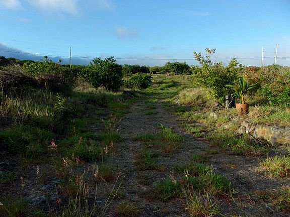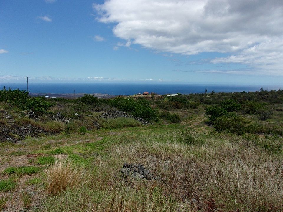 Beautiful 3 acre corner is graded with a long driveway to the bottom where a large clearing and great ocean view awaits you. Dirt, bushes and grass abound , and Christmas Berry trees provide shade This lot is unique for the rocky area and perfect for weekend camping or while you build. Stakes are visible on all 4 corners