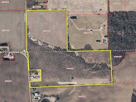 Rare opportunity to own this 103 acres in LaGrange/Sugar Creek township. 91 tillable acres /12 wooded. There are 2 separate parcels a 40 acre parcel and a 63 acre parcel. The 40 is buildable. The 63 would require a conditional use permit. Long term farm tenant has been renting for $180 per acre would continue if buyer wants, but currently not renewed for 2026 if buyer wants to farm. Documented yields of 212 for last corn and 61 for last soybeans. Nice dry ground. Easy access off Jackson/Highway O. Come take a look today!