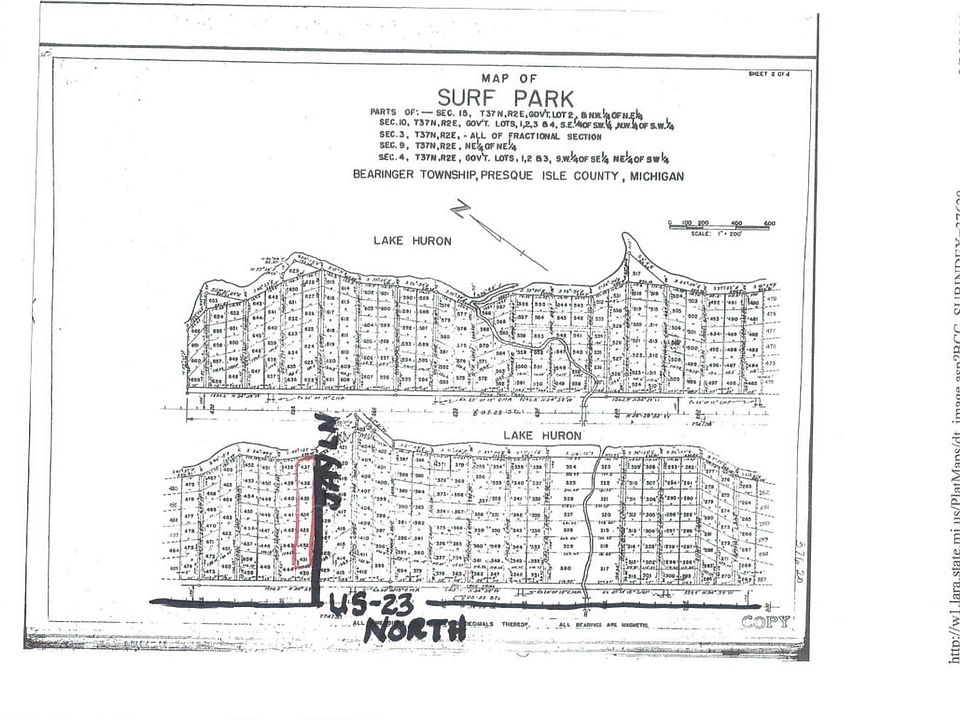 PRICE REDUCED - Lake Huron Sandy Beach, Woods and Privacy! 117.25' Frontage X 700' (1.88 Acres - 7 lots total). Grassy lakefront lot, with underground power and telephone service. 6 additional adjacent Wooded Lots. Natural Gas available at the road. A great building site only a few minutes from the Hammond Bay State Boat Harbor where you can launch your boat or seasonal slips are available, too.