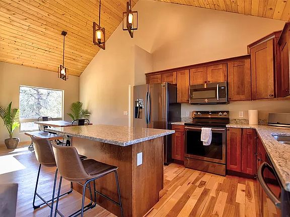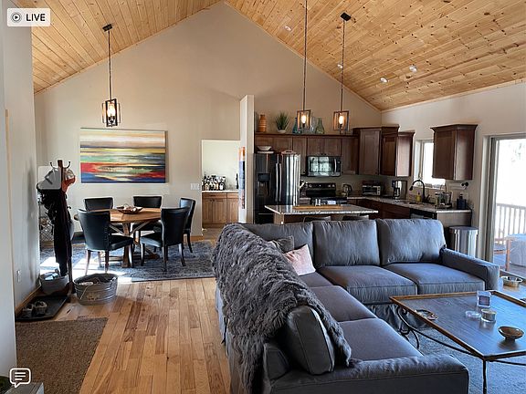 Custom home for rent in Lost Park Ranch with spectacular views and amenities, and just 3 miles from Tarryall Reservoir!! This gorgeous furnished home was built in 2019, is situated on a private lot with covered front & back decks, hot tub and dining patio. Indoor features include, vaulted T&G ceilings, open floor plan, hickory wood flooring, granite counter tops, hickory cabinets, black stainless appliances, rock trimmed gas fireplace, private Master on-suite with a modern, stand-alone tub and laundry room off of the kitchen. Garage offers bonus suite with private deck and spectacular views above garage. Mature landscaping with aspen groves, wildflowers and pathways. Private fishing rights. Close to NF & just a few minutes from Tarryall Reservoir.