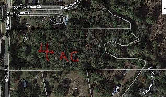 4 acres unrestricted, wooded tract of land. Backs up to Lawrence Creek, making it a great get-a-way or go fishing from your back yard & enjoy all nature has to offer on your stroll to the creek. Mobile homes welcome. Mineral Rights to be retained by the seller. Owner will finance if needed.