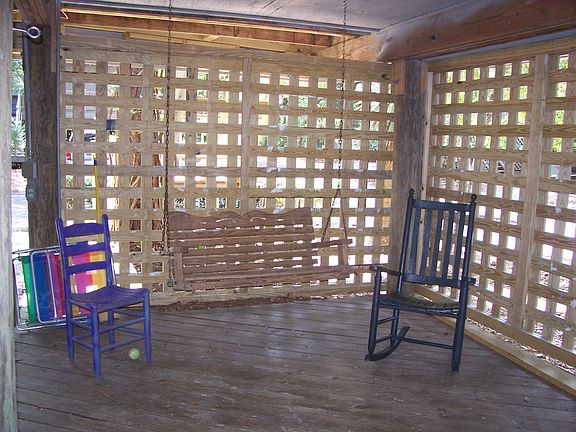 Porch swingQuiet cul-de-sacGlassed porchEnclosed hot water showerStainless steel sink