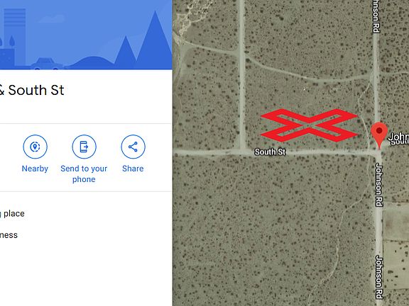 Approximately 4.72 acres on the corner of Johnson Road and South Street in Phelan. The lot has a water line next to the property with a water credit over $5,000! Power is nearby. Buyer to verify all information. Asking $40,000 - make cash offer!