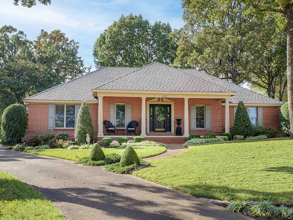 Are you looking for a warm and inviting home with tons of character? Get ready to fall in love with 607 Old Canyon. This traditional style home sits on a large beautifully landscaped lot in the Brentwood subdivision. 4 bedrooms, 2 baths with formal dining room. Tons of custom details from the plantation shutters, crown molding in every room, built-in book cases in the living room and guest room and beautiful trim details throughout. Kitchen features quartz countertops, double oven and breakfast bar. Large primary suite with quartz countertops and walk-in tile shower. Backyard is fully fenced with a picturesque patio and gorgeous landscaping. Sprinkler system in the front and backyard. Just minutes from Craighead Forest Park. This home is a must see! Schedule your tour today!