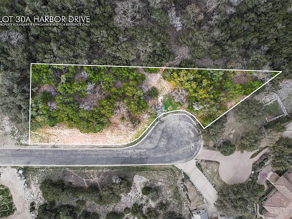 Located on a quiet cul-de-sac in an executive home neighborhood, lot 30A Harbor Drive is a little over one acre. There is quite a bit of street frontage (see photo) that gives you building options. The lot is flat at the street, slopes down to a great building site, then slopes down to the wet weather creek. This lot is covered with many, many beautiful and large trees. Even with Lake Travis being so low, due to the drought, there would still be a lake view from the second story. Imagine what the lake view and sunsets will be when the lake is full again. An added bonus is there is a marina just a short distance away, less than 5 minutes by golf cart, where you can keep your boat. The other homes on Harbor Drive are quite lovely, making this a wonderful place to build your dream home.