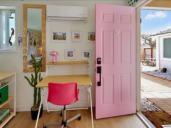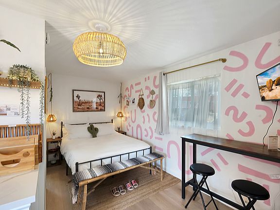 Welcome to your perfect desert getaway, a fully furnished charming 1-bed, 1-bath studio oasis nestled in the heart of downtown Joshua Tree w/ all the comforts of home & unbeatable proximity to the high-desert's most sought-after attractions. Quiet, peaceful, and yet not too secluded, Terrace House offers a homey space to unwind and recharge. Just a short 15-minute drive to the renowned Joshua Tree National Park, adventure and exploration awaits you... Inside, you'll find a well-equipped, newly-remodeled kitchenette making quick and simple meal prep a snap. The memory foam queen bed ensuring a restful night's sleep after a day spent exploring nearby Joshua Tree Village, a quaint town shimmering with unique shops and cozy cafes just 2-5 minute drive away. If work calls during your stay, the dedicated work-from-home desk offers a cool inspiring workspace with backyard views. To ensure optimal comfort throughout your visit, the home features an A/C wall unit and humidifier for temperature control. There's also 3 outdoor seating areas to chill out at. Laundry is not included as there's a laundromat a 2 minute drive away. No parties, no smoking, no commercial photography/filming. Quiet hours 10PM - 6AM 2 people max (sorry, no pets...) Laundromat 2 minute dive on main street Utilities (cable, trash, water, gas, power) separate from rent (about $150/mo) Please don't flush anything besides toilet paper-- we're on septic tank. Broken/damaged furniture will be guest's responsibility to pay for replacement and labor costs to assemble, Proof of renter's insurance can also be acceptable.