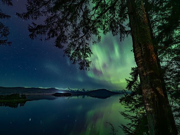 Sitting about a hundred feet up in the lush rainforest canopy, start your day with coffee while listening to eagles and whale watching from bed, enjoy Juneau's best offerings - like remote glacier hikes - all less than 15 minutes away, then return to luxurious comforts to relax at home and watch the sunset as flying squirrels and eagles play next to the deck, and wildlife like orca pass by just offshore.