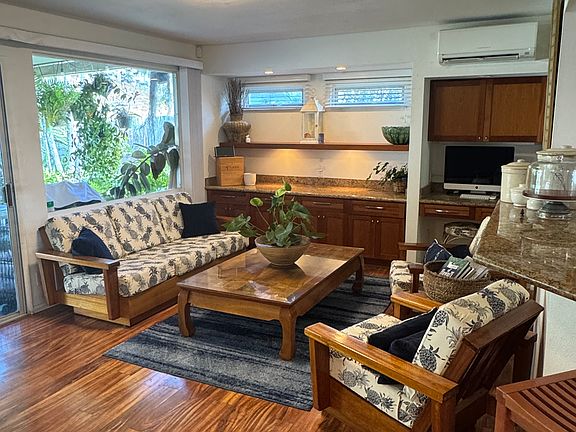 The unassuming exterior acts as a cover of the beauty that lies within as you step onto gorgeous wooden floors of Koa laminate.