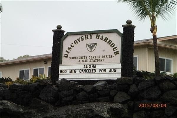 Discovery Harbor is a covenant controlled community of over 800 lots. The homeowner’s Association is active, involved and committed to keeping the area a beautiful place to live. The Community Center is a busy hub of activities, including hula, exercise, yoga, game night, quilting and fund raising rummage sales. Discovery Harbour was originally built around an 18-hole Robert Trent Jones Sr. golf course, which is currently privately owned and not open to the public. However, the homes adjacent to the golf course enjoy expansive ocean and/or mountain views over the fairways and greens. The location on the Big Island is ideal, mid-point between the two major metropolitan areas of Kona and Hilo – or in sightseeing terms, halfway between the most beautiful beaches in the world in Kohala, and the rain forest and waterfalls on the eastern side of the island. This location gives Discovery Harbour the seclusion and privacy of the countryside with the convenience of urban amenities not so far away. And, it is located just 30 miles from Volcanoes National Park where you can see a volcano that’s been active for almost 30 years. The current annual association dues are $100.00, subject to change. HOA Fee covers maintenance of common area and community center. Information about Discovery Harbour, including CC&Rs, can be found on their website: www.discoveryharbour.net Discovery Harbour features paved county maintained roads, county water, electric and telephone service, cable tv, a community and volunteer fire department.