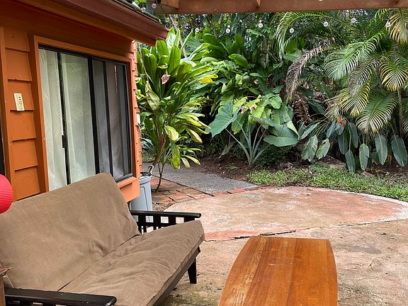 Shared Lush backyard filled with fruit trees (banana, orange, lime, passionfruit) & tropical flowers (plumeria, ginger, heliconias, bird of paradise & more)