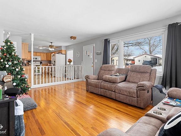 Charming and spacious 3 bedroom home in Sunnyside subdivision! Open living room to bright kitchen. All appliances stay! Beautiful hardwood in the living room AND all 3 bedrooms. Plenty of closet space including extra linen and storage closets in the hallway. Full bath with whirlpool tub, modern tile surround, and double sinks. You'll even have a convenient laundry shoot. Relax knowing you will have a dry basement that comes with a warranty from Permaseal. Battery back up on sump pump as well. Enjoy the outdoors on your large deck and fenced in area of the yard. Very neat and clean and well landscaped for your enjoyment! Easy I-57 access and only a one hour drive to Chicago. Come take a look soon as your new home is calling. Occupied home- please provide some notice for showings.