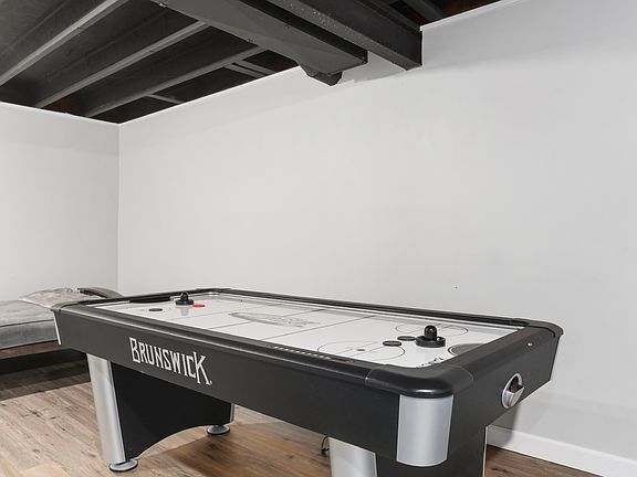 The large basement is a great space for you to hang out with friends, have the kids play area, or just unwind and relax. The basement is fully renovated with 3 full sized futons, a large smart TV, & an air hockey table!