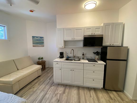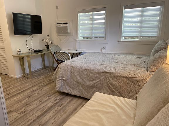 Single occupancy charming studio bedroom in a beautiful neighborhood close to Kapaa town and Kealia beach. Studio has a kitchenette, bathroom and shower. Attached to the main house, the studio has it's own driveway and off street parking. It comes fully furnished and has air conditioning. Newly renovated with new vinyl flooring and cabinets. Walk to nearby public transportation or the beach. Close to restaurants, shops and old Kapaa town. Utilities $150 (trash, cable, electric).