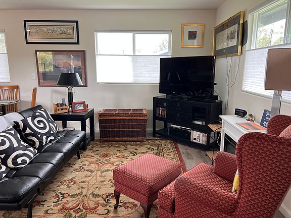The kitchen is outfitted with brand-new stainless steel appliances complemented by custom honey-toned cabinetry, creating a warm yet modern atmosphere perfect for both daily living and comfort. Throughout the home, you'll find custom Bali pleated fabric shades featuring the highly practical bottom-up/top-down cordless design, offering versatile light control and an extra touch of sophistication.