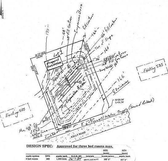 Town water at road, BOHA with 36 to 54 inches of fill for 3 BR home. Level, some large trees.
