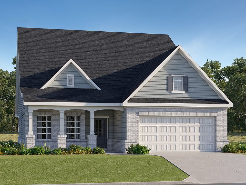 This single-story home features an ideal design. The living room, kitchen and dining room are arranged in an open floorplan that offers access to a patio. The kitchen features the largest center island and pantry among Hickory Bluff's ranch-plan homes. A flex space situated off the foyer can easily be transformed to suit the household's needs. With two bedrooms, this home is perfect for empty nesters.