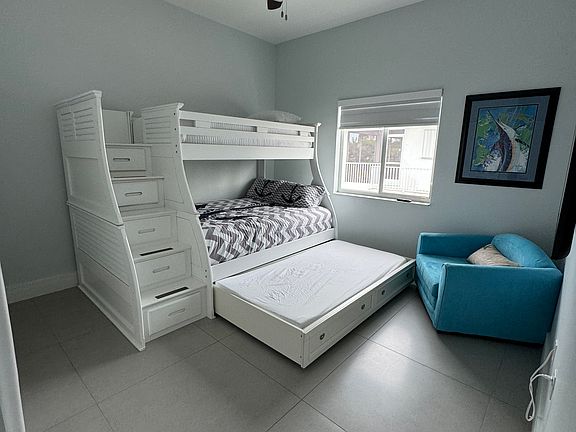 Large master bedroom with walk in closet and jacuzzi bathtub in the master bathroom, 2nd bedroom has a queen bed with a bunk bed on top and a trundle bed, 3rd bedroom has a queen bed.