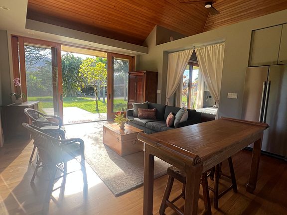 This listing is for one of two detached studios available for long-term rent (6-month or longer lease) on a lush, private 4.25-acre property on Kalihiwai Ridge located on Kauai's beautiful North Shore.