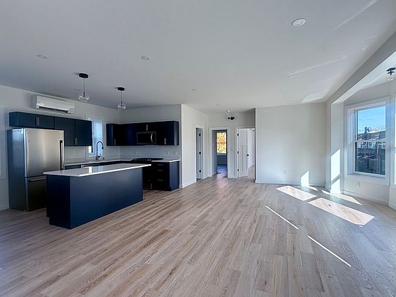Brand new, gorgeous 2BR apartment on 2nd floor in a historic building in uptown Kingston. Stunning blue island kitchen with all new stainless steel appliances (including a dishwasher & gas stove) Open floor plan with hardwood floors throughout, huge bay windows in living room and BR provide tons of natural light. Large double closets in each bedroom & a washer-dryer in unit. Mini splits for heating and cooling and a balcony that overlooks uptown Kingston. No stone left unturned here.
