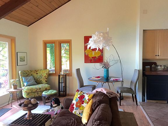 Down a 4+ mile deadend road,in The glory n neighborhood.Go through the forest, a quiet retreatWaterfront vmid century modern. home, views from every room( ok not bathroom!) recently remodeled, cathedral wood ceilings, wood stove, AND heat pump Open concept. Fully furnished,wool carpets, large closet, w/d., dishwasher, and everything you could want! even a espresso machine!