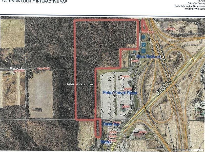 59 wooded acres in the Town of Caledonia just South of Portage next to Petro Travel Plaza, Blue Beacon Truck Wash, and Days Inn. Located on the west side of the I-90/94 & I-39 split, just one exit prior to Cascade Mountain Ski Resort. Zoned C-2, General Commercial District. Buy to develop now or invest in this raw land to hold for future development. In the meantime, utilize the property for the great hunting opportunity it provides. Seller is currently in the process of enrolling in a Managed Forest Law program.
