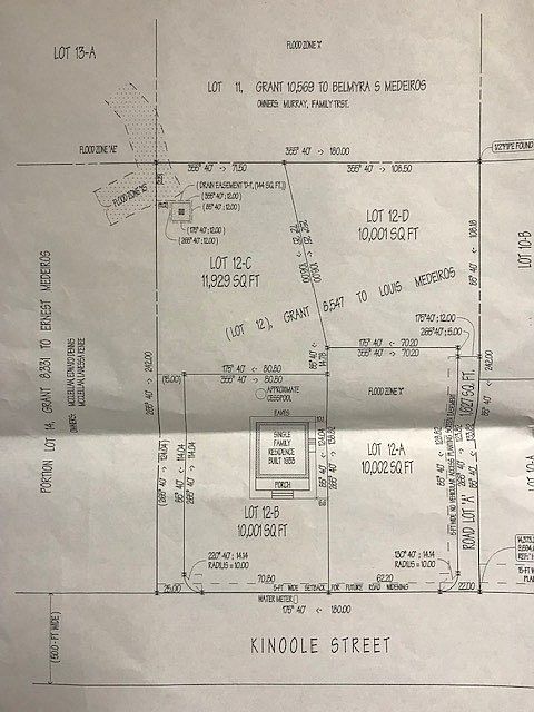 NEWLY APPROVED 4 LOT SUBDIVISION ON KINO'OLE STREET IN HILO! This is 1 of 4 properties for sale in this newly approved subdivision. Subject property is a 10,002sf vacant lot, cleared, surveyed, water meter box installed, and ready to build on. The other 3 properties also available for sale are a residence and two vacant lots, as follows: 1) 2451 Kino'ole Street (Lot 12-B) is listed for $260,000 (MLS 638946) and contains an existing dwelling with a classic two-story home built in 1933, consisting of 3 bedrooms and 1 full bath upstairs. Living room, kitchen, den (currently used as a bedroom), half bath, and large covered front porch are all downstairs on the main level. There's also a generous 1,140sf unfinished basement with a multitude of potential as additional usable space. 2) Lot 12-C is listed for $160,000 (MLS 639026). 3) Lot 12-D is listed for $160,000 (MLS 639027). The vacant lots have been cleared, surveyed, water meter boxes installed, and ready to build on. Survey completed by Paul H. Murray (LPLS), on 12/02/19, all stakes/pins are marked and visible for all properties. Properties can be sold separately, or together should an investor be looking to develop a small subdivision to resell the homes, or to build and rent to generate monthly income. Showings by appointment only. One of the properties (2451 Kino'ole Street/Lot 12-B) is currently tenant occupied and requires a minimum of 48 hours advanced notice to show/view. Please do not disturb tenants. Although information provided herein is believed to be correct, Buyer and Buyer's Agent to conduct their own due diligence. Buyers and their agents urged to verify any information they deem material or important to their decision to purchase this property.