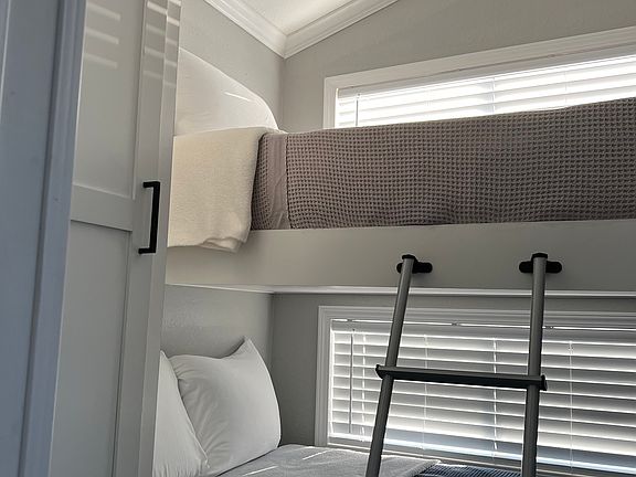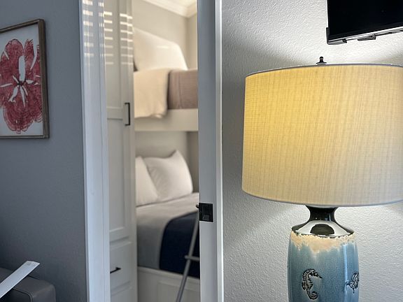2 Bedrooms One with a comfortable queen bed, the other with a twin-over-full bunk bed.