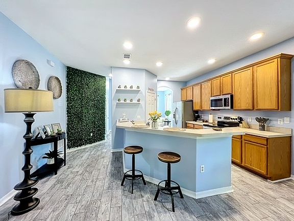 Ready to move in available for immediately occupancy. Must see great location .Maintenance Grounds included!! An amazing 3 Bedroom and 2 full-bath single-family one-story home with Beautiful Kitchen comfort and convenience with an inviting open floor plan. The living room is bright and airy with ample space perfect for relaxing after a long day. The kitchen is equipped with modern appliances, plenty of counter space, and overlooks the dining area, which sits beside large windows drawing in natural light. The primary suite features a walk-in closet and an en-suite bathroom with dual sinks and a step-in shower. The additional bedrooms are both conveniently located near the second full bathroom with a shower/tub combination. A laundry room with a washer and dryer is included for added convenience. Step outside to the screened lanai and enjoy your private swimming pool, ideal for both quiet mornings and entertaining evenings. The backyard offers a peaceful treat . The home also includes a two-car garage and driveway parking. Located close to U.S. 192, this home offers quick access to major roadways including SR 417 and I-4, making commutes seamless. Shopping, supermarkets, dining, and entertainment are just minutes away with The Loop, Old Town, and the attractions along Highway 192. The house can be rented fully furnished or without. The house very clean and furnishd very modern .