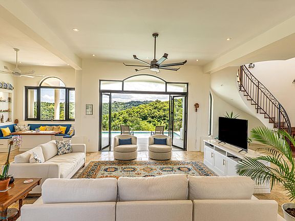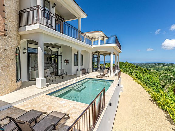Prop ID: J-3722 A modern masterpiece overlooking the sea and mountains Designed by an architect and built in 2024, this exquisite single-family residence sits on an expansive 2,960 m² lot within the prestigious gated community of Palatine Hill, offering privacy, security, and unobstructed ocean and mountain views. With over 3,700 sq. ft. of gross living area (excluding balconies, three-car garage, and terraces), this home showcases thoughtful design and top-quality finishes throughout. Featuring 4 bedrooms and 3.5 bathrooms, the layout seamlessly blends functionality and sophistication. The main level hosts three spacious bedrooms, each with direct outdoor access, while the upper level is connected by elegant mahogany stairs, leading to the fourth bedroom and a terrace with panoramic views. The gourmet kitchen is a true centerpiece, featuring custom cedar wood cabinets, quartz countertops, a pantry room, coffee station, double oven, and top-of-the-line appliances. Premium finishes include travertine interior floors, coralina pool decking, and porcelain terraces. The saltwater pool comes with an electric heater, providing year-round enjoyment. Sustainability and comfort are at the forefront, with 23 solar panels, 13.5 kWh solar batteries for 27 KW, and an additional 27KW backup generator. The property also includes eight security cameras, two water cisterns, a water softener, a filtration system, and an irrigation system. For safety and durability, the home offers six hurricane shutters for windows and six mechanical shutters for doors. Coordinates: 18.308611,-67.205416..