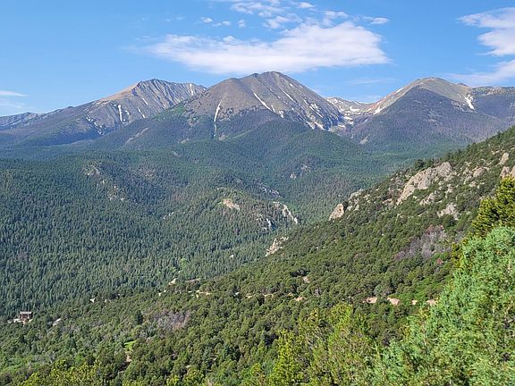Million dollar mountain views!!! Situated above the Arkansas River Valley, this remote, elevated building parcel offers unmatched panoramic views in all directions, including high mountain peaks, green river valleys below, heavy timber, meadows, and more! Located in Pine Ridge Ranch, you'll follow a winding, well-maintained scenic gravel road up to a jutting ridge with a prepped driveway. This ridge stands tall above all of the surrounding landscape, giving you immaculate views from your main home building site for miles in all directions. Giant mountain peaks tower to the west and south, giving you incredible sunset backdrops, while a giant valley to the east allows sunset views over the Sangre De Cristos. Steep terrain below the ridge adjoins BLM to the east, adding more adventure acres!