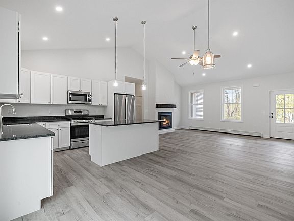 Check out this amazing Modern Farmhouse Style Ranch, to be complete by July 2026! Don't miss out on this rare opportunity to own a brand-new home with the potential for additional living space in the full unfinished basement and let's not forget the two-car garage with direct entry! With three bedrooms and two baths, this cozy ranch is perfect for one-floor living. The open concept kitchen, dining room, and living room are filled with natural light and feature vaulted ceilings, built in electric fireplace with rustic mantle, stylish granite countertops, shaker style cabinets, pantry, stainless steel appliances and a kitchen island/breakfast bar. Dining room with a glass sliding door which leads to the back deck, overlooking your backyard. The primary bedroom includes a walk-in closet, bath with soaking tub and granite-top dual-sink vanity, while the two additional bedrooms and full bath provide plenty of space for everyone. Laundry room with sink and folding countertop for added convenience. Situated on a generous 2.57-acre lot in Northfield, this home offers the best of both worlds - a peaceful country setting with easy access to I93 for commuting, shopping, and more. *Pictures are a facsimile; some pictures may include some upgrades.*