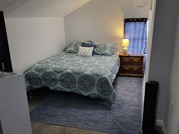 Everything under one roof. This small single family home is perfect for the single traveler or 1 companion. The lower level is furnished nicely with electric leather couch and a large smart tv. TV trays are provided. However, there is a large eat in kitchen bar that seats 3 of desired. There is a large pantry/storage area downstairs where all cleaning tools/supplies are located. The kitchen is finished off with a full size fridge, range, 1200 watt microwave and a large air fryer, big enough for a pizza. All kitchen needs are included. Upstairs is a large bedroom with 2 dressers, night stand a queen bed and a 42" smart tv. The bathroom with a shower is off the bedroom and contains the combo w/d unit.