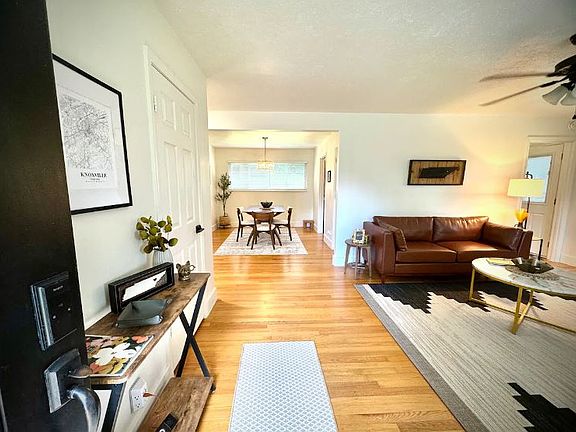 Furnished, two story remodeled brick rancher in a residential neighborhood close to downtown and less than 10 minutes to UT, Neyland Stadium, I.C. King Park, Publix grocery, the river walk, and the airport. Featuring two bedrooms upstairs on the main floor, one king bedroom, and one with two twin beds and a pack n' play. This floor also features a full bathroom, kitchen, dining room, and living room with a large-screen TV, Roku, and Wifi to stream your favorites. A staircase in the living room leads to a spacious finished basement with a reading nook, a desk workspace, a full bathroom with walk-in shower, and a third sleeping area with a queen bed and TV. The basement also leads to the garage where the washer/dryer is housed.