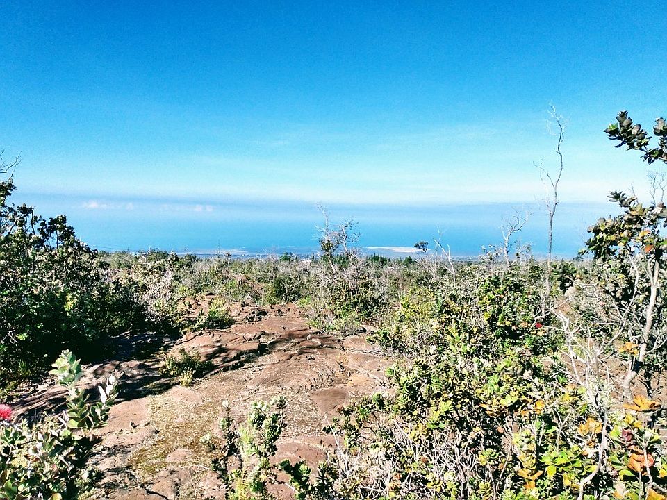 OCEAN VIEWS!!! And a pretty lot with smaller native ohia trees with beautiful seasonal red lehua blossoms! ONE OF 2 LOTS FOR SALE, SIDE BY SIDE on this nicely located property in the middle half of Hawaiian Ocean View Estates, the 2nd largest subdivision in the whole U.S.!!! The Pictures tell the story! The lay of the land gives a really nice View of the Ocean and open sky. A very diverse property with much potential for beauty. There are homes located on either side of this property. Utility poles on this street!
