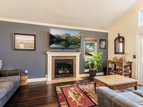 Tucked away in a peaceful cul-de-sac, this 4-bedroom, 2-bath home offers comfort, style, and an outdoor living space designed for relaxing and entertaining. Inside, you'll find a beautiful kitchen featuring Medallion cabinetry, granite countertops, and engineered wood floors. The open living area is warm and inviting with vaulted ceilings and a gas fireplace. Both bathrooms showcase quality tilework and thoughtful finishes throughout. Step outside to enjoy the spacious deck, complete with outdoor lighting, a fire pit, and a premium hot tub - perfect for unwinding under the stars. A utility shed provides extra storage for tools and gear.