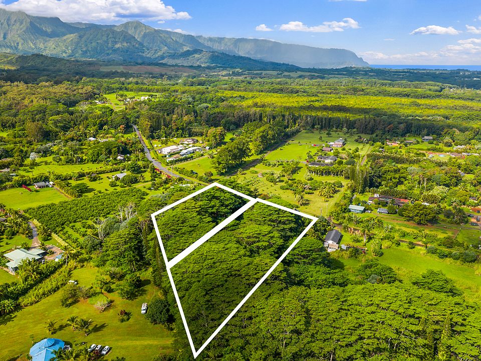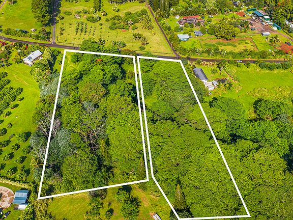 Build your dream home and guesthouse on this level lot and enjoy the Northshore lifestyle. Walk to the store, ride your bike to historic Kilauea Town, or take a quick drive to world-class surf spots. Enjoy dinners, gatherings, and events at Common Ground Kauai just down the street. Raise crops, fruit trees, farm animals, and children on this sweet land. Mixed-plate vegetation with grasslands and towering shade trees. Encourage the jungle or manicure it to your level of finish. Neighbor’s driveway features Royal Palms which provides an exotic tropical backdrop. People just love Kuawa Road.