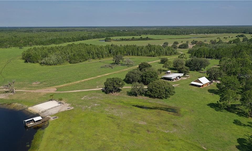 30 mins from Disney and 45 mins from MCO. Access to I-4 is 5 minutes to the west. The property boundary bisects two huge and very deep lakes, and two other lakes are completely within the property lines. There are two docks and ramps that provide access to the lakes, one is wheel chair accessible. A private beach is also on one of the lakes. A ranch office/cabin with 3 bedrooms and two baths was built in 2015 and is wheel chair accessible and overlooks one of the lakes. Amazing wildlife and fishing are available on this active cattle ranch. Game populations include ducks, deer, turkey hogs, quail and many more. Physical access to the property is over a recorded easement that also serves other ownerships. Covenants are recorded that outline the use and maintenance of the easement.