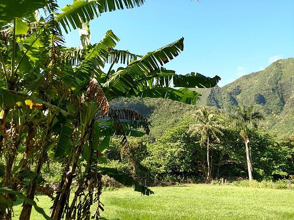 Haena Hui lot 60 enjoys a spectacular view, secluded location, and close proximity to famous Makua beach (known as "Tunnels") on the north shore of Kauai. Here, you are front row center to the steep slanting 1000' waterfall over Manoa valley. Its so close, you hear it! Seclusion is assured as vast pasture acreage is your backyard and the palm lined lot is at the very end of a private drive. Incredible beach and ocean play is just a stroll down the neighborhood drive, across Kuhio Highway, and to nearby beach access path. The lot is mowed with a large avocado tree that produces incredibly firm and creamy fruit. Utilities are underground to the lot including water service. This rare offering has unmatched one-of-a-kind qualities to build your dream house!