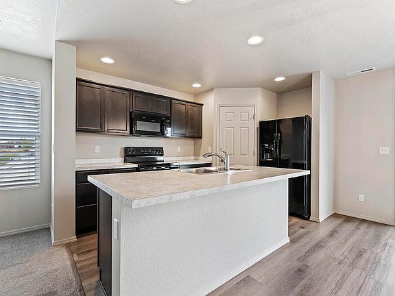 Built in 2020, this charming 3-bedroom, 2-bathroom turn-key home with a modern open floor plan still looks brand new! The large lot on the corner of a cul-de-sac with no rear neighbors gives you a little extra privacy. The large fully fenced backyard is perfect for all of your outdoor activities with a gazebo for shade and shelter from the weather. In the kitchen you will find a beautiful breakfast bar perfect for entertaining, matching black appliances, a walk in pantry and tons of storage. The convenience of a refrigerator, washer, and dryer are all included. Great location on the border of Meridian and Kuna, close to Meridian rd. for easy access to conveniences & Hwy 84. Water, trash and sewer included. Tenant to pay gas and electric.