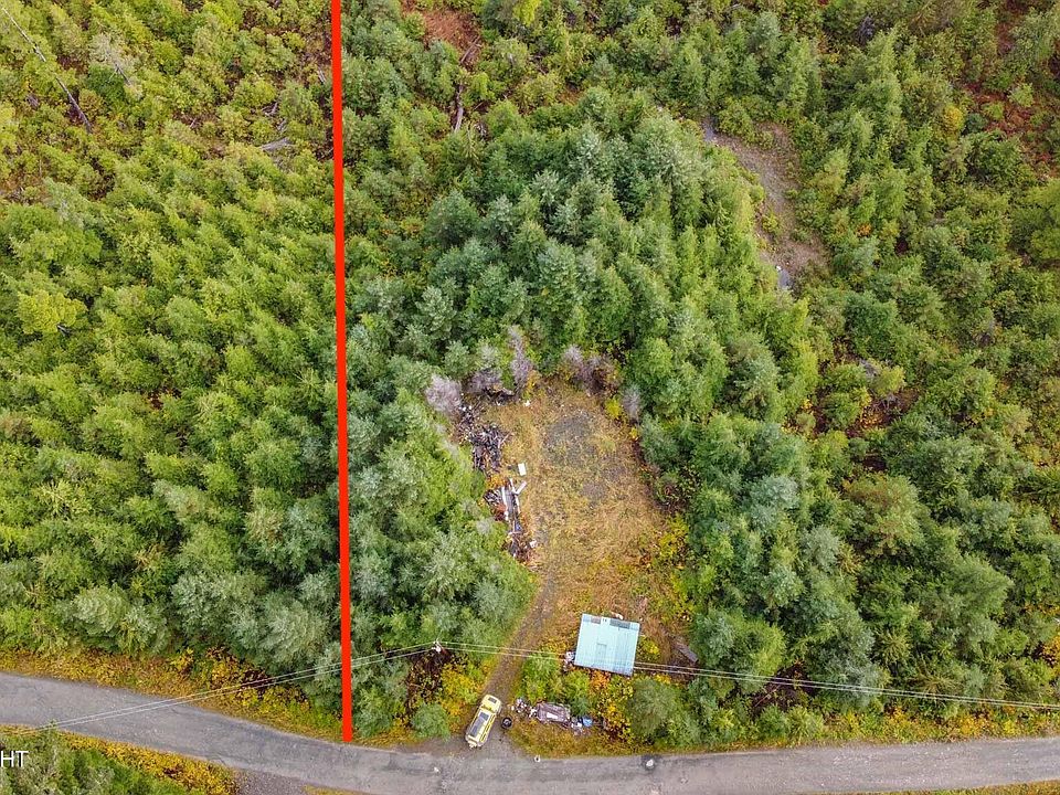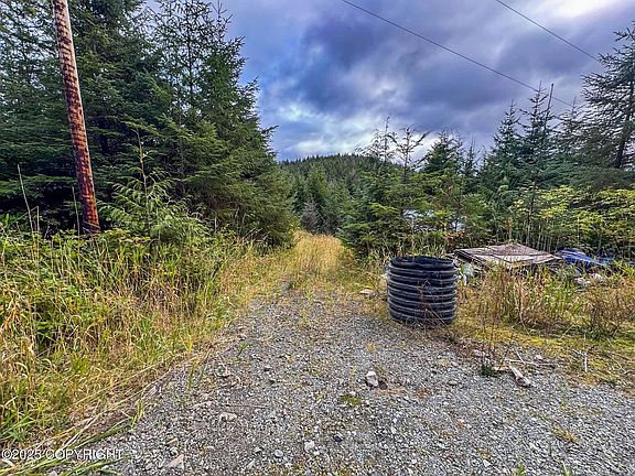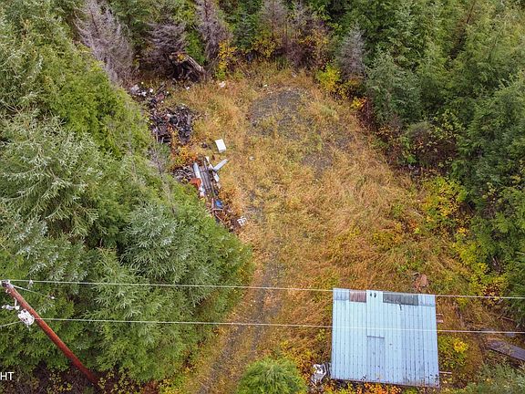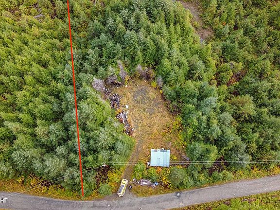 Dense young-growth on most of lot. Has existing driveway & pad Both may need some some reconstruction. Power at road. Large woodshed.