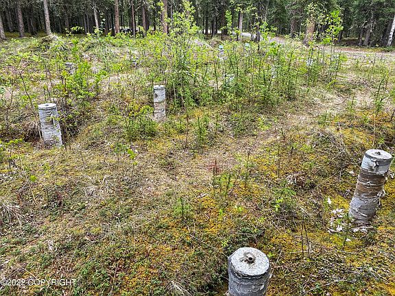 4.816 acre Lot has sono tubes with beveled volcano support at the base installed for a 24X36 building. Outhouse on site. Garden area. Location is near town but on the edge of the city of Tok. Gravel drive way into the building area.
