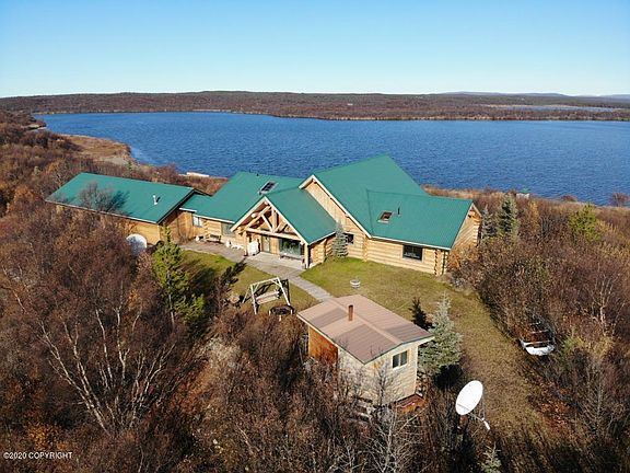 Beautiful Log Home with 700ft of Pike Lake waterfront in King Salmon. 7 acres of amazing views located next to Katmai National Park. Home is part of an Airpark and fronts 1500ft of runway. Being offered fully furnished, including LED lights throughout, new appliances, 4-Car Garage and massive workshop. This is the quintessential Alaskan Home, won't find another one like it! Drone Video available!
