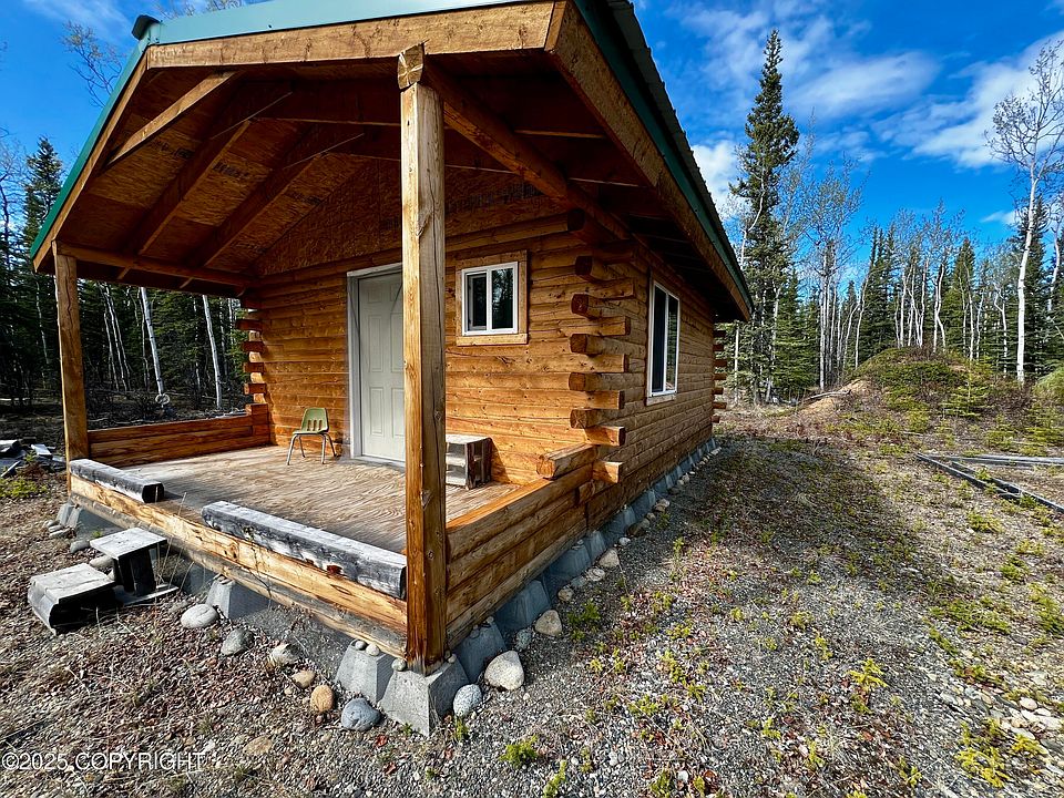 This charming log cabin, built in 2011 on 5 acres of pristine, virgin land, is just 10 minutes from the town of Tok. The property includes a 140-foot well and septic. Currently off-grid with power on the neighboring lot. Cabin has open floor plan with a framed-off unfinished bathroom. Potential mountain view with additional land clearing. No Property Taxes!