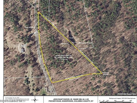 Flagging/Maps are approximate. SE corner monument that is a stone pile with Rebar was flagged along with a stake . A stake w/flagging was placed at the approximate SW and NW corners. Old low stone wall remnants were found along the south and east property boundaries. The west boundary shares the ROW with Fischer Road. LA has flagged along Fischer Rd to show approx. west side boundaries. See documents for details. Best place to park is beyond 505 Fischer Rd on right off Rd. Easiest to walk in near the FOR SALE sign. PROPERTY ON LEFT between 562 and 505 Fischer Rd Homes. Electric at road.