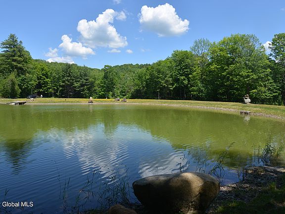 grassy area surrounding the pond with Feng shui rock pillars and sitting dock on the shoreline. 2nd small pond at the road. Included with this acreage is a great cabin with a loft bedroom and a front sitting deck. Electric is in place with included generator and solar panels. A woodstove for chilly days. Stone walls througout the woods. Perfect for outdoor recreational sports, such as hunting, snowmobiling, etc. or a paradise off the beaten track for those that just want to get away from it all!