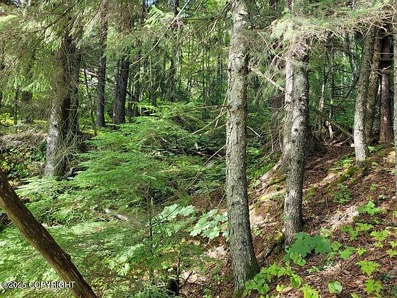 Forested lot with south-facing exposure & creek along the west lot line. Neighborhood has an out-of-town feel, but only 1.5 miles from downtown Haines. Sloping lot faces Chilkat Mountains and Cathedral Peaks across Chilkat River for great view potential. 14' wide access & utility easement at southwestern corner has been partially developed to adj lot & can be used as start for driveway.