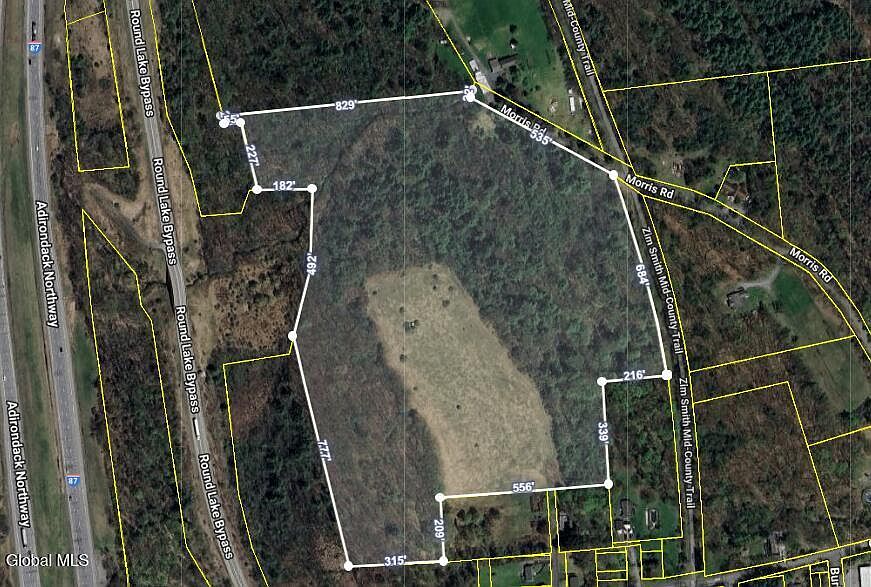Discover endless possibilities with this rare 32.9-acre parcel perfectly situated in the Village of Round Lake, just minutes from I-87 and the Luther Forest Tech Park. This unique property borders the Zim Smith Trail, offering direct access to one of Saratoga County's most popular recreational paths.