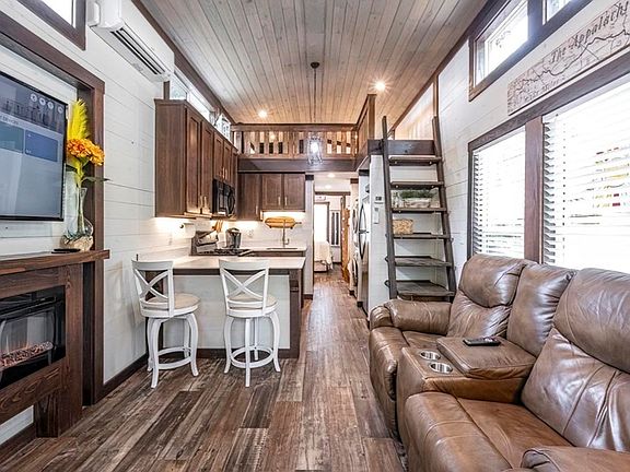Welcome to your perfect getaway at L42 Mountain Meadows Circle, right on the beautiful Hemptown Creek in Morganton, GA. This cozy little gem is everything you need for a relaxing escape or an awesome rental investment. Step inside to find 400 square feet of well-designed living space that packs a punch. There's one comfy bedroom, cozy loft, bunk closet for extra guests and a fresh, clean bathroom, all decked out with stylish vinyl floors and totally furnished, so you can move in without a worry. Imagine starting your day with a coffee on the deck, soaking in those calming creek views and the peaceful pastures beyond. When the sun sets, unwind in your beautiful outdoor spaces. This property boasts ample deck space, screened in porch or cozy creekside fire pit. It's outdoor living at its best! This home is in a fantastic gated community loaded with cool perks like a swimming pool, hot tub, play ground or community fishing ponds. Parking's a breeze too—you've got spots included and a covered parking gazebo! This place is turnkey, so whether you're moving in yourself or looking to start a rental, it's ready to go. Embrace the waterfront lifestyle and let the sounds of the creek guide you to a laid-back way of living. Come see what life on Mountain Meadows Circle is all about—a cool mix of comfort, style, and nature. Whether it's your new home or a smart investment, it's all here waiting for you!
