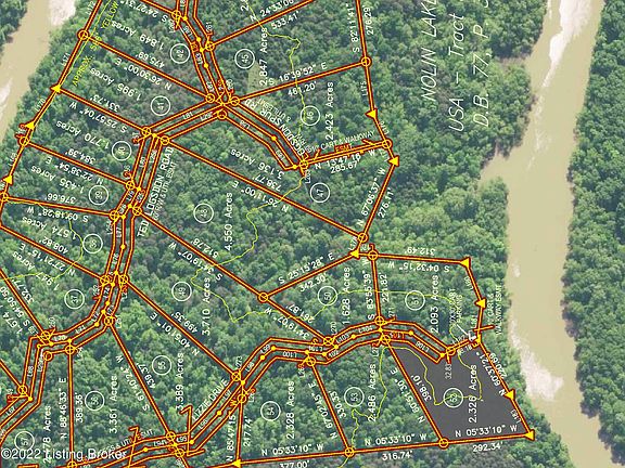 4.550+/- surveyed WATERFRONT acres located in recently developed non-restricted River View Estates near the Pine Hurst Bay area of Nolin River Lake, Less than 1 mile to the Sportsman public boat ramp. Great opportunity to own your own little lake area haven! Utilities are in the area but not connected to the lots. Buyer is responsible for utility installation. Camping, campers and tiny houses are permitted. Most lots have marketable timber.