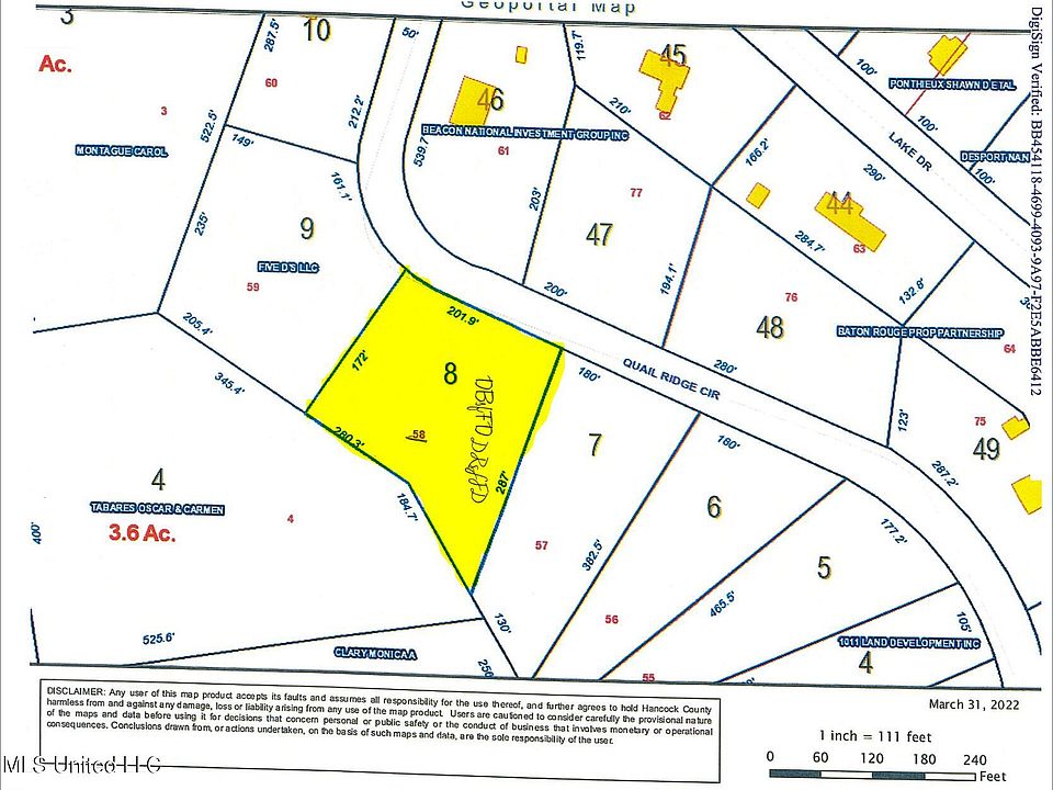 Nice buildable lot in White Cypress. Mobile Homes contact Hancock County Zoning Department.
